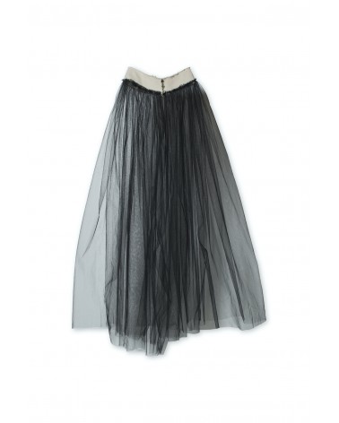 -50% Debonair Tulle Skirt Add to Wishlist Add to cart Regular price €290 -50% Price €145 Ankle-length, long voluminous tulle skirt with rustic cotton thread waistband and bronze button to fasten. Raw hems.