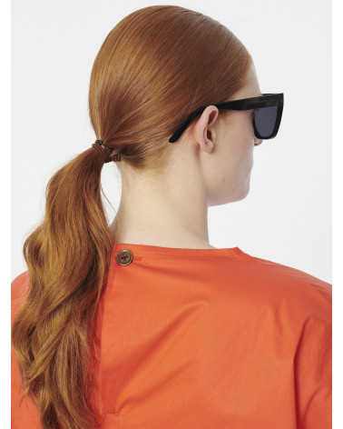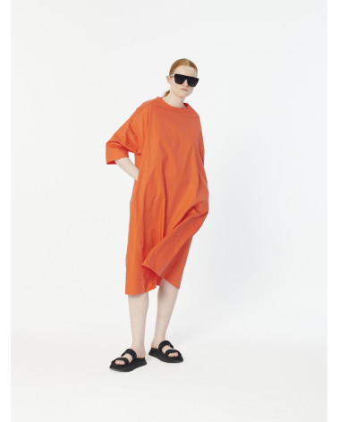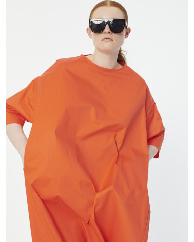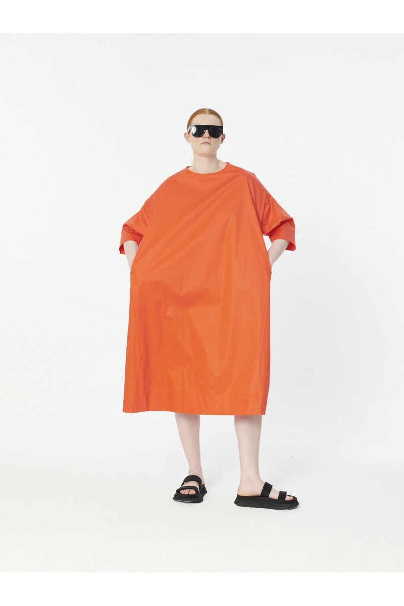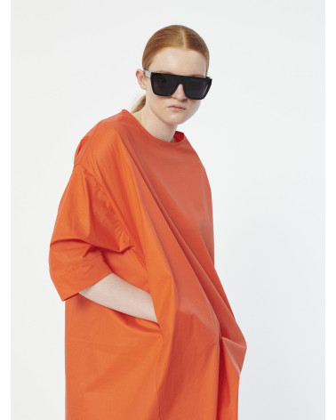 Stunning oversize midi t-shirt dress in lightweight, water-repellent cotton fabric detailed with side seam pockets and back fastening with bronze buttons.