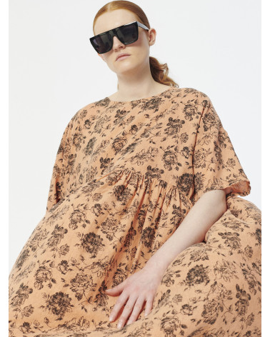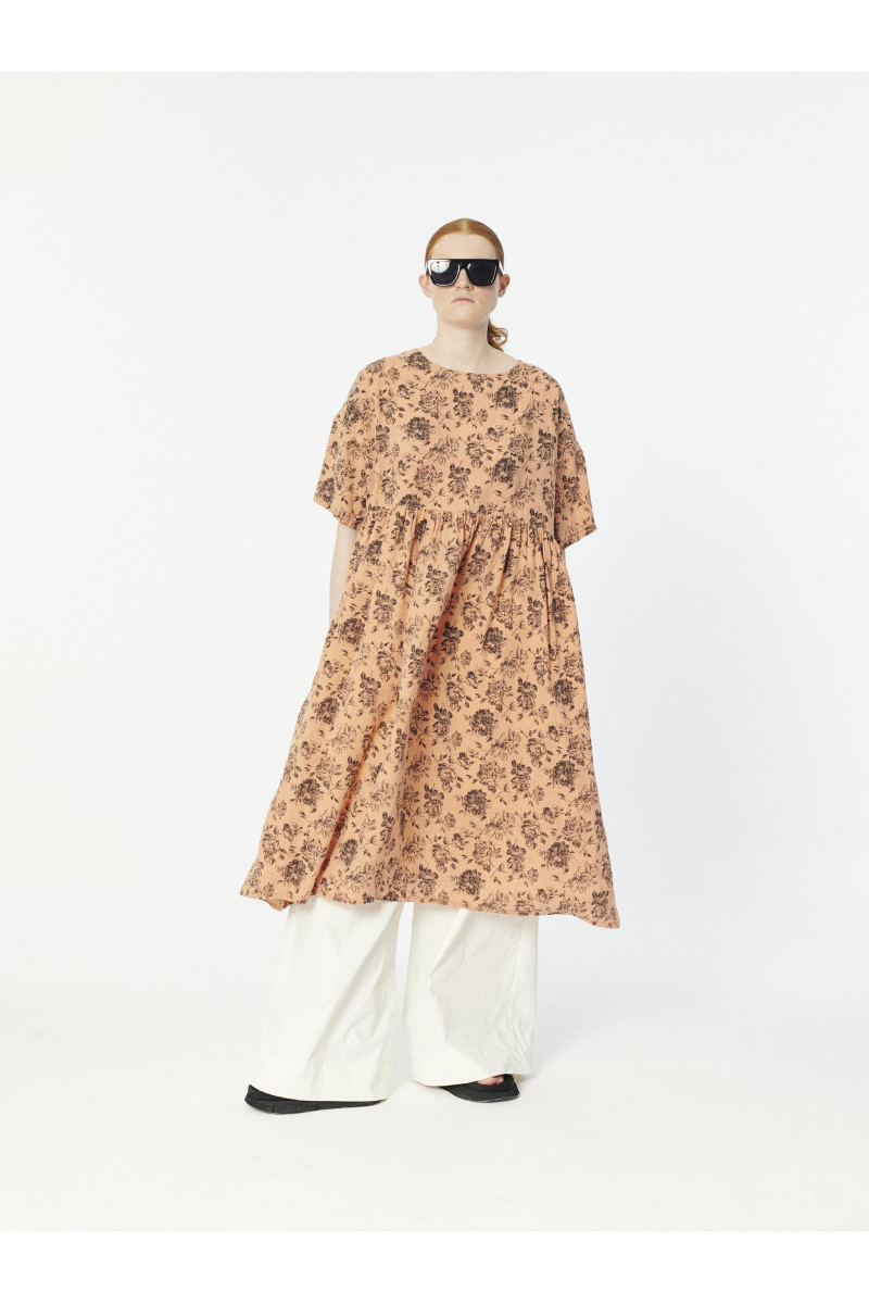One of our essential and beloved pieces, this smart midi dress with a relaxed fit is made in a breathable flowy and silky soft fabric. Detailed with round neck and a vaporous skirt.
