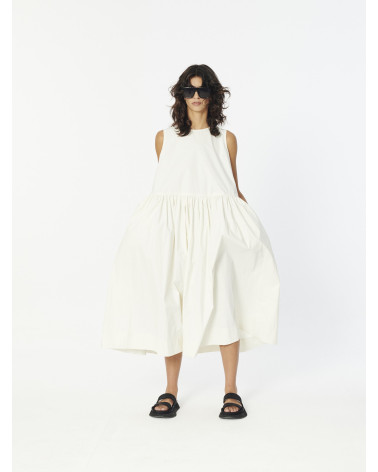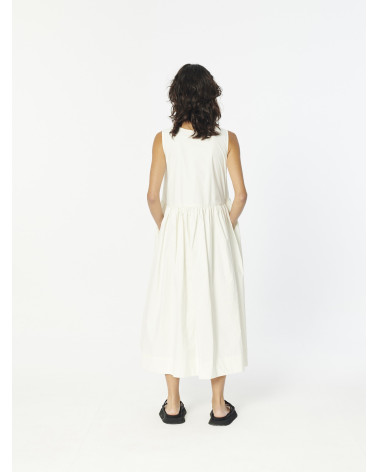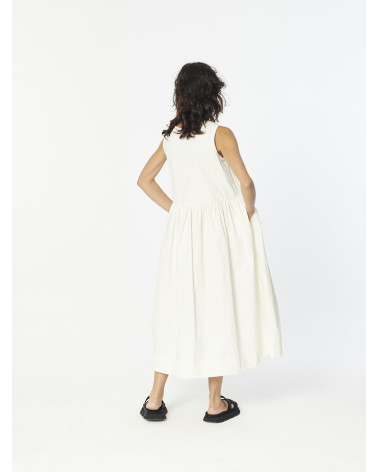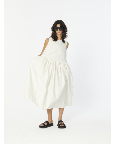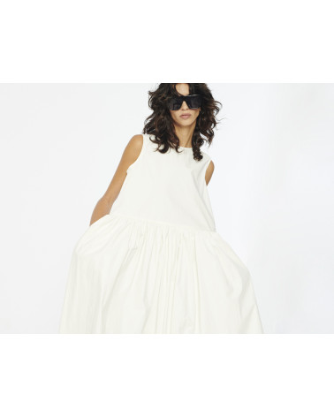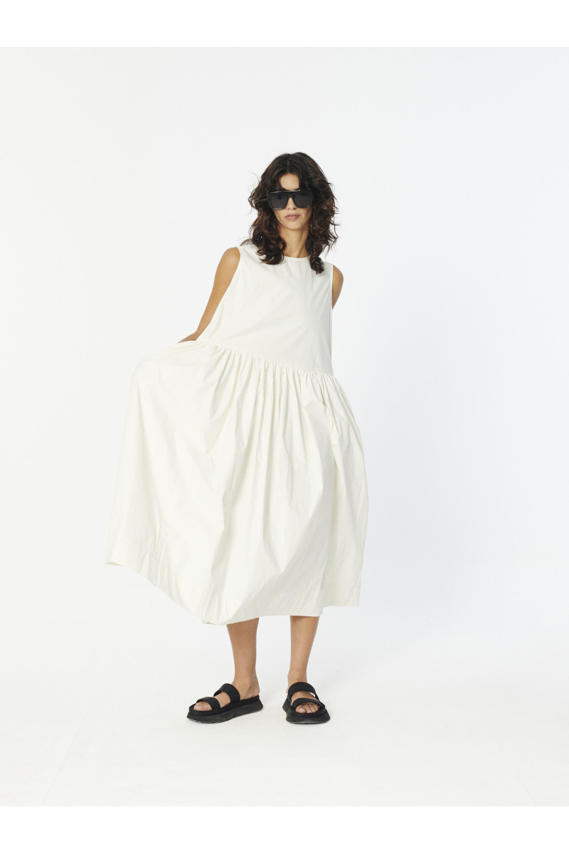Cozy Sleevless Round neck Dress with a relaxed fit and an A-line silhouette with a straight cut on waist and voluminous full skirt. Crafted in a lightweight, water-repellent cotton fabric and detailed with two concealed seam side pockets.