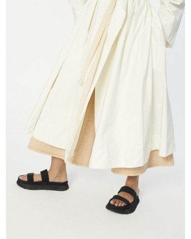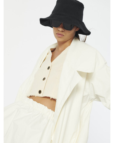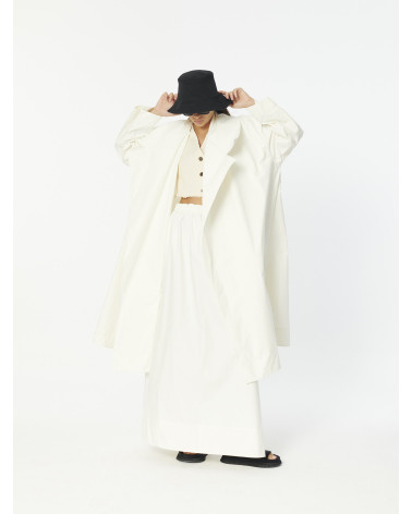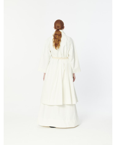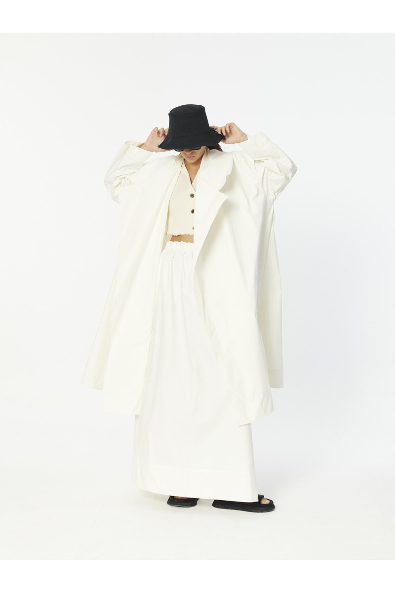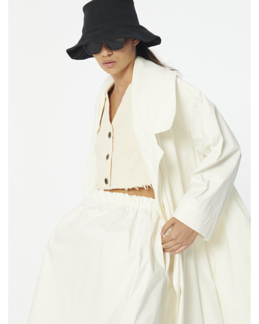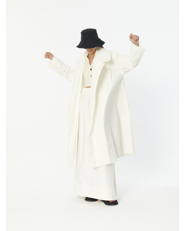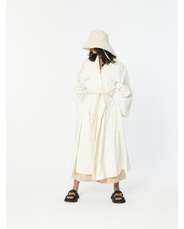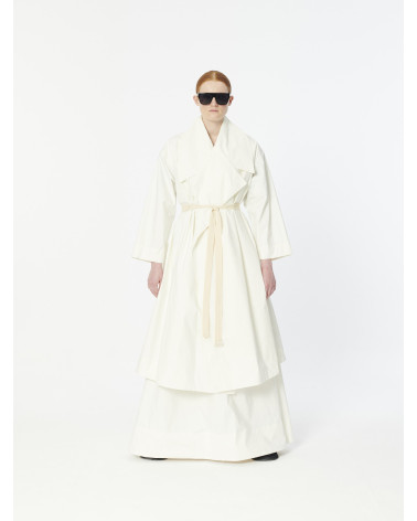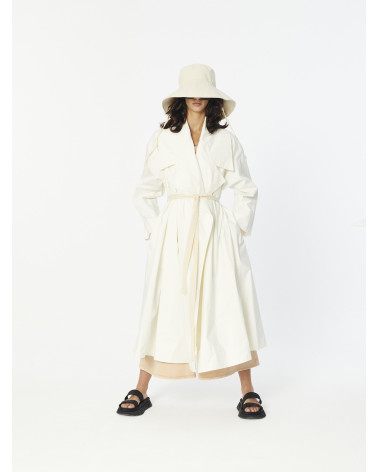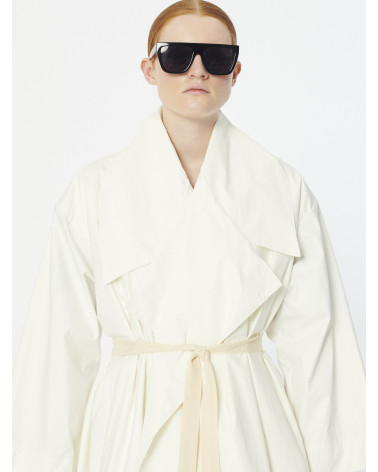 Sophisticated and oversized wrap trench coat crafted from a lightweight, water-repellent cotton fabric. It features a magnificent collar and two concealed side pockets.