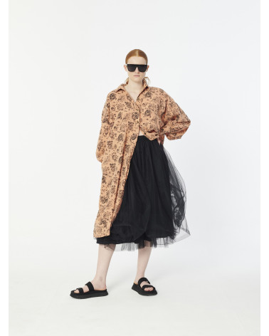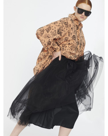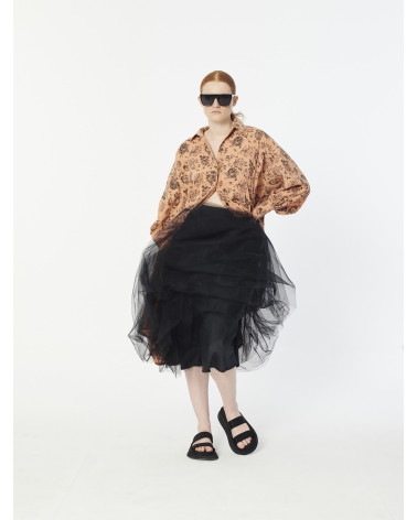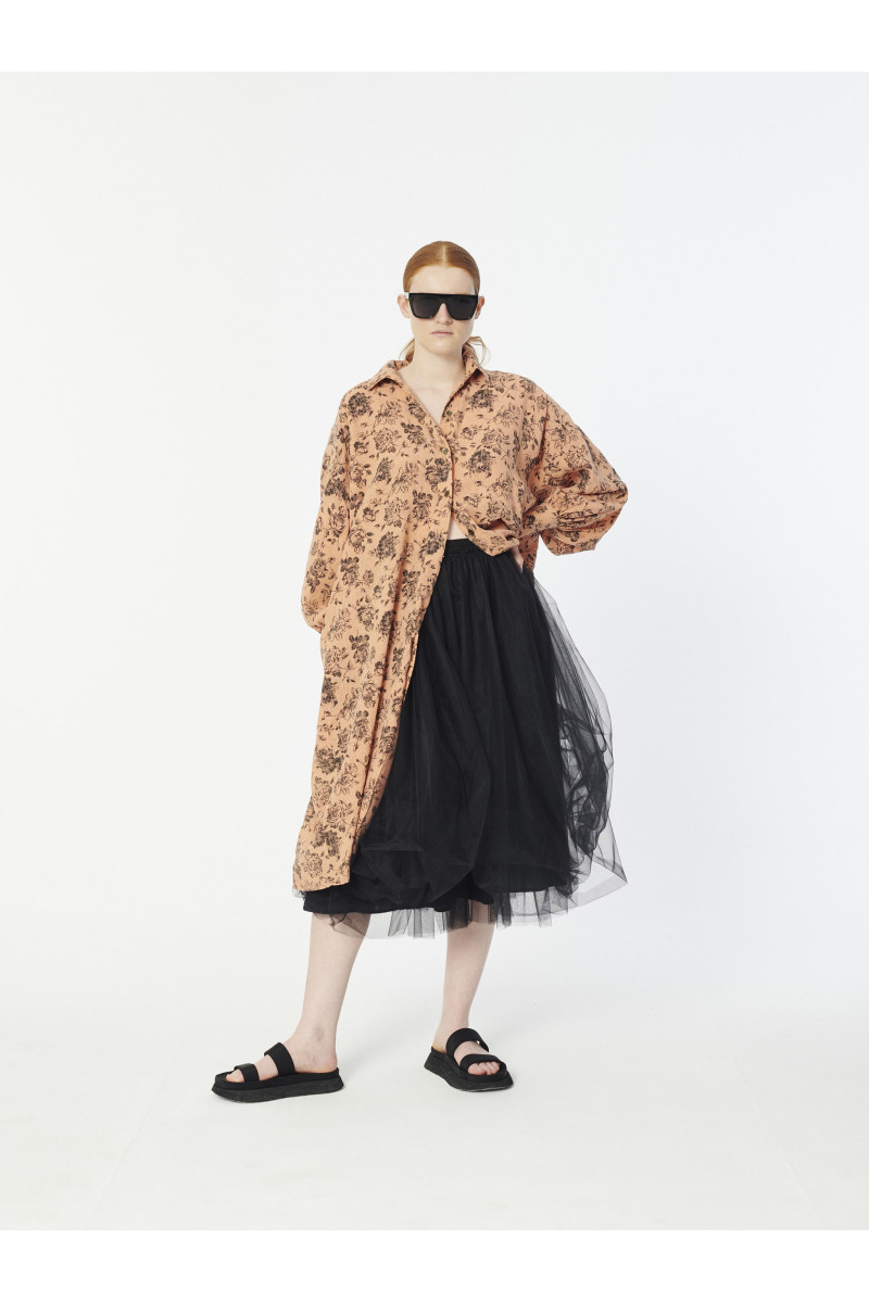 Mid-length lined skirt featured in our beloved soft tulle fabric. Four layers of this lovelly tulle gives a beautiful volume on the bottom. An elastic band at the waist can be adjusted for comfort and to draw it in to the body. Raw hems.