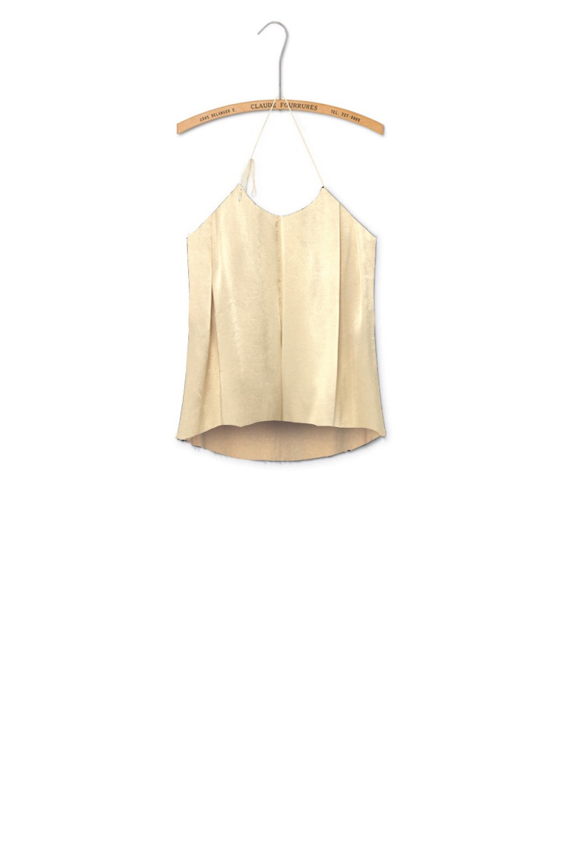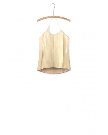 Satin-viscose top with fine twill ties and open back. Additional selvedge with exposed seams. Raw hems.